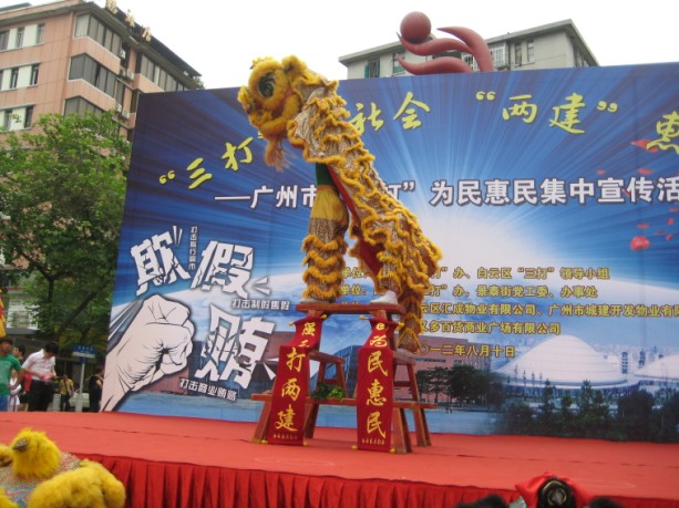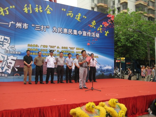 8月10日,我司林副总经理为广州市“三打”“两建”为民惠民集中宣传活动开幕致辞,宣读了我司多年来一直坚持的“诚信经营,打造品牌”的经营理念,积极地向广大市民展现了公司的经营理念和文化。