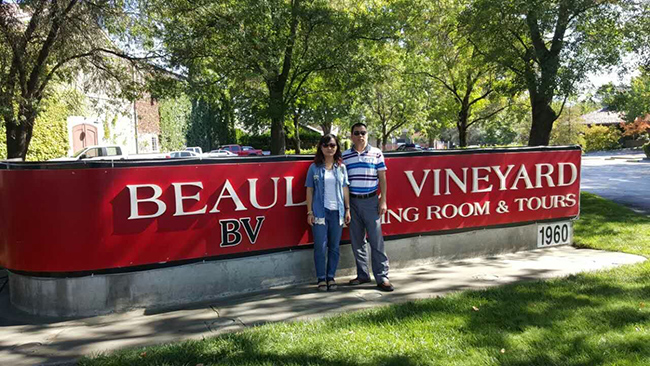 我司董事长张健伟偕同美涛总经理张海燕来到位于纳帕谷的柏里欧Beaulie Vineyard (简称BV)酒庄考察。