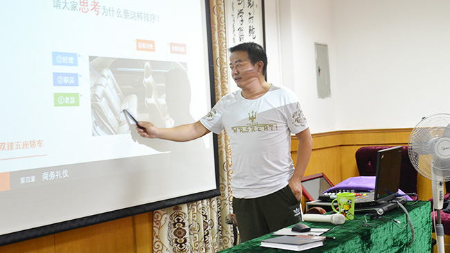 刘副总为大家进行日常销售、生活中应该注重的礼仪培训,总结分析中秋销售情况及第三季度工作内容